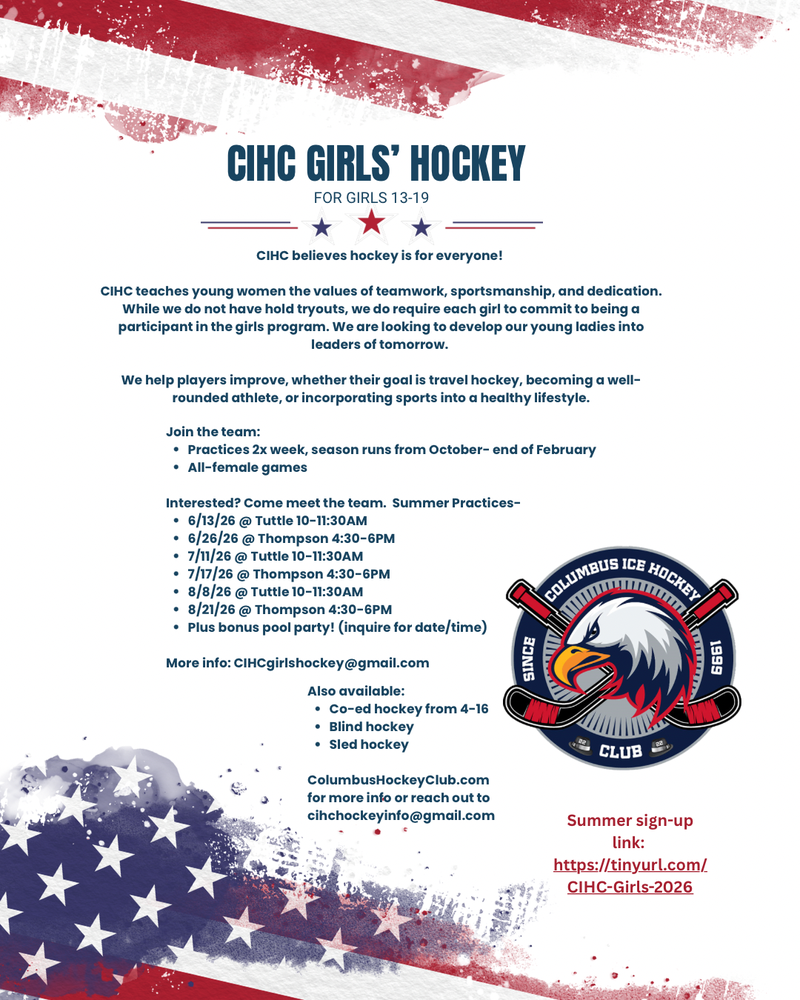 Check out our informational flyer regarding the 2026 Girls Hockey program.
